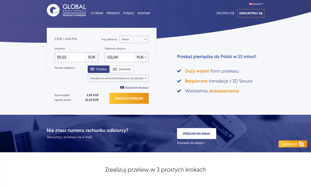 Serwis internetowy do realizacji przekazów pieniężnych z Unii Europejskiej do Polski w dogodny i przejrzysty dla użytkownika sposób.
