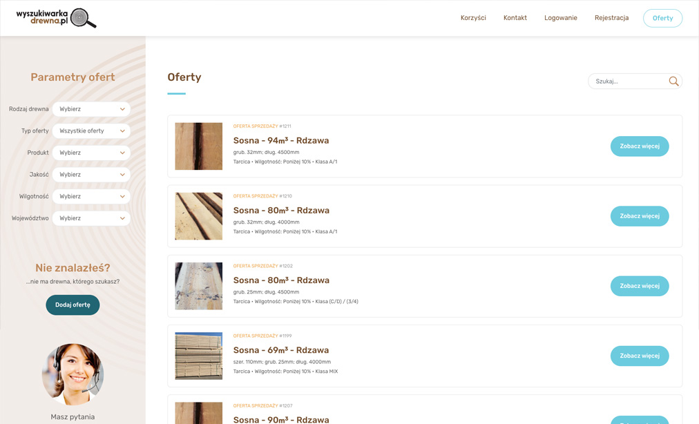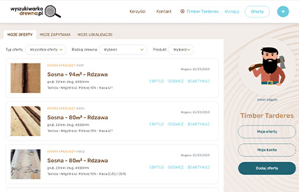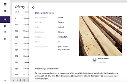 Platforma typu marketplace dla branży drzewnej w formacie B2B - łącząca producentów drewna (jak tartaki) z odbiorcami.
